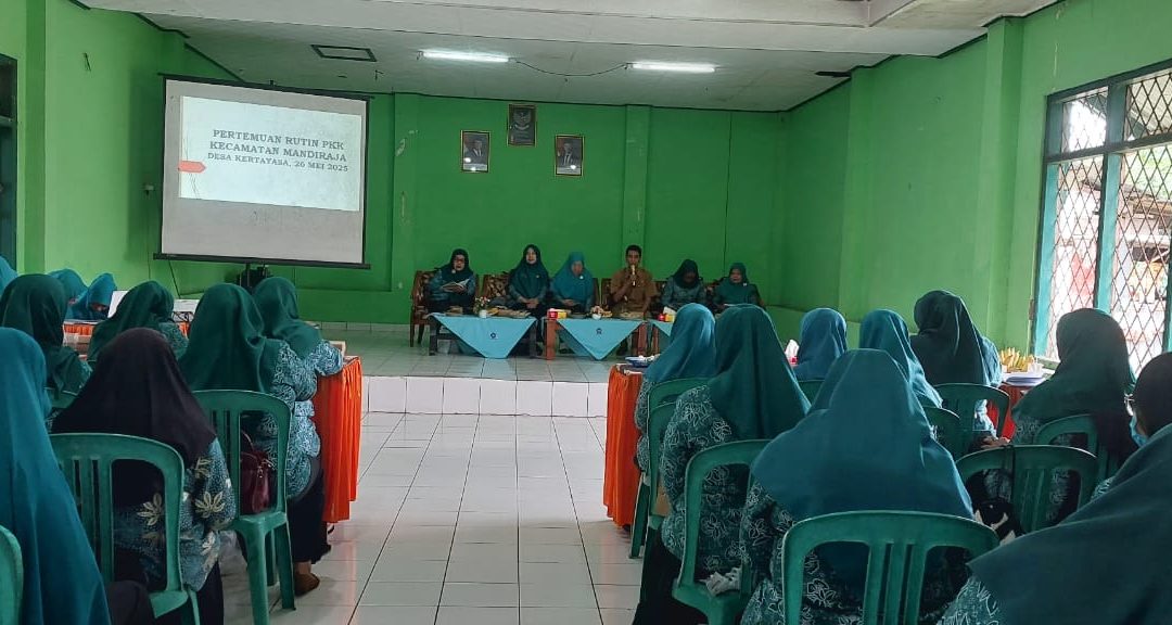 Pertemuan Rutin Bulanan TP.PKK Kecamatan Mandiraja Tahun 2025, dilaksanakan hari Senin tanggal 26 Mei 2025 bertempat di Aula Kantor Desa Kertayasa, dihadiri Oleh Ketua TP Pkk Kecamatan Mandiraja dan Pengurusnya, Dewan Pembina TP..PKK Desa Kertayasa, Ketua TP.PKK Desa, Sekretaris, dan unsur Pokja 3 se Kecamatan Mandiraja.